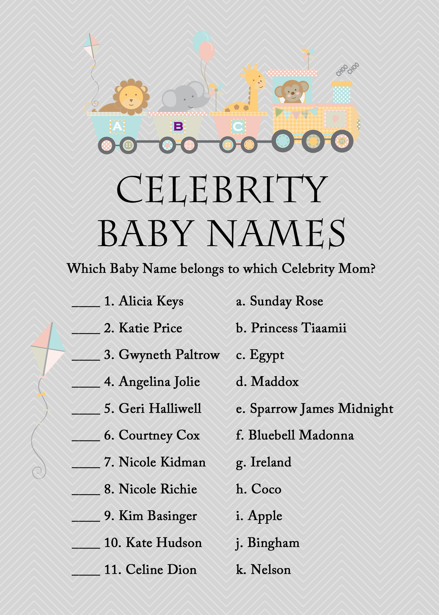 Published at 1500 × 2100 in Animal Train Baby Shower Game Pack – Safari Jungle.