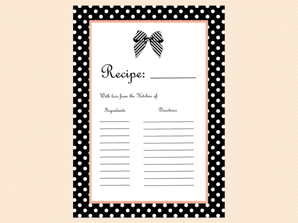 recipe card, Black and White Ribbon Bridal Shower Games Printable Pack, Black & White Stripes Bridal Shower Games, bachelorette game, Wedding Shower BS38 ← Previous Next →