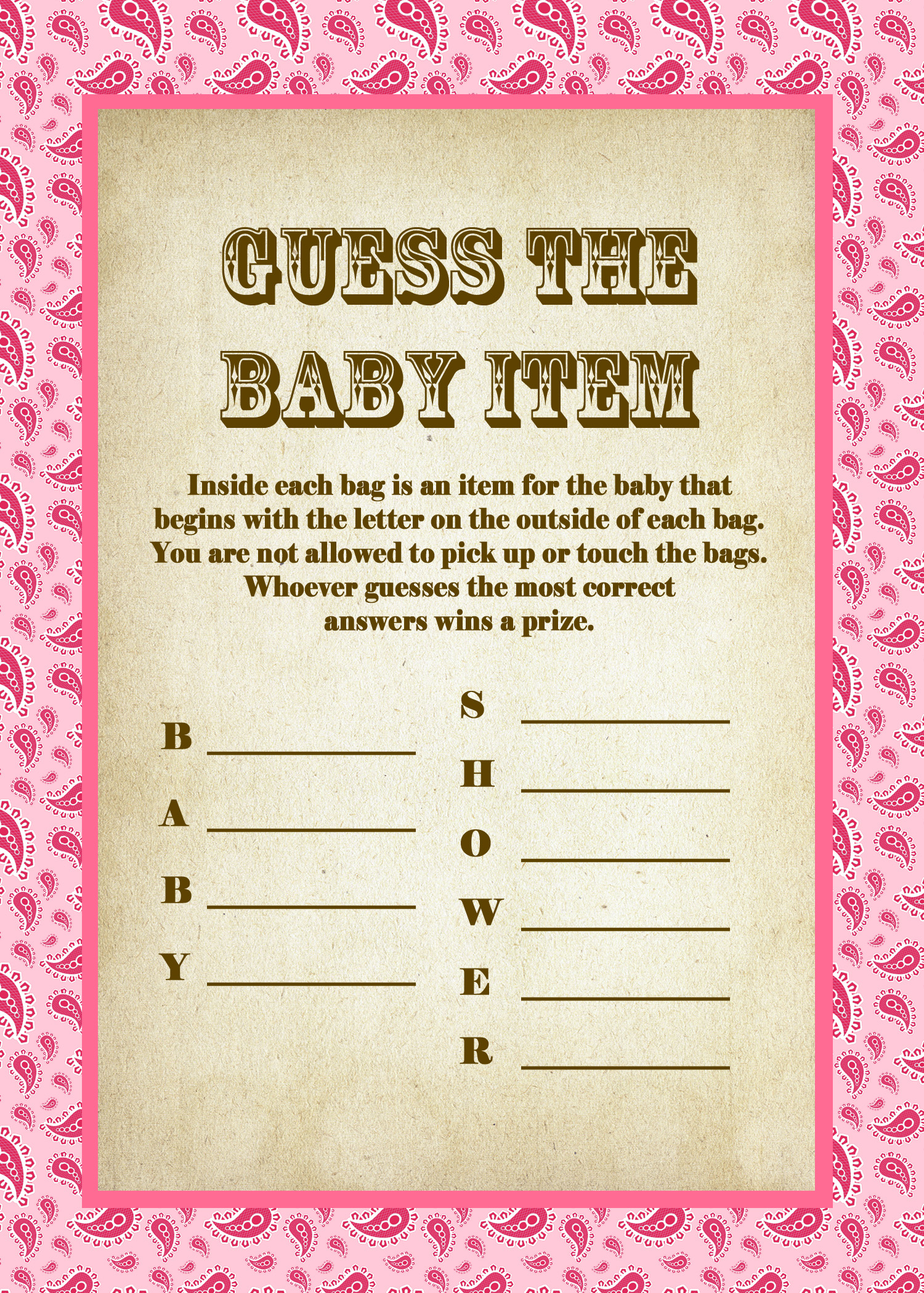 Published at 1500 × 2100 in Cowgirl Paisley Baby Shower Games.