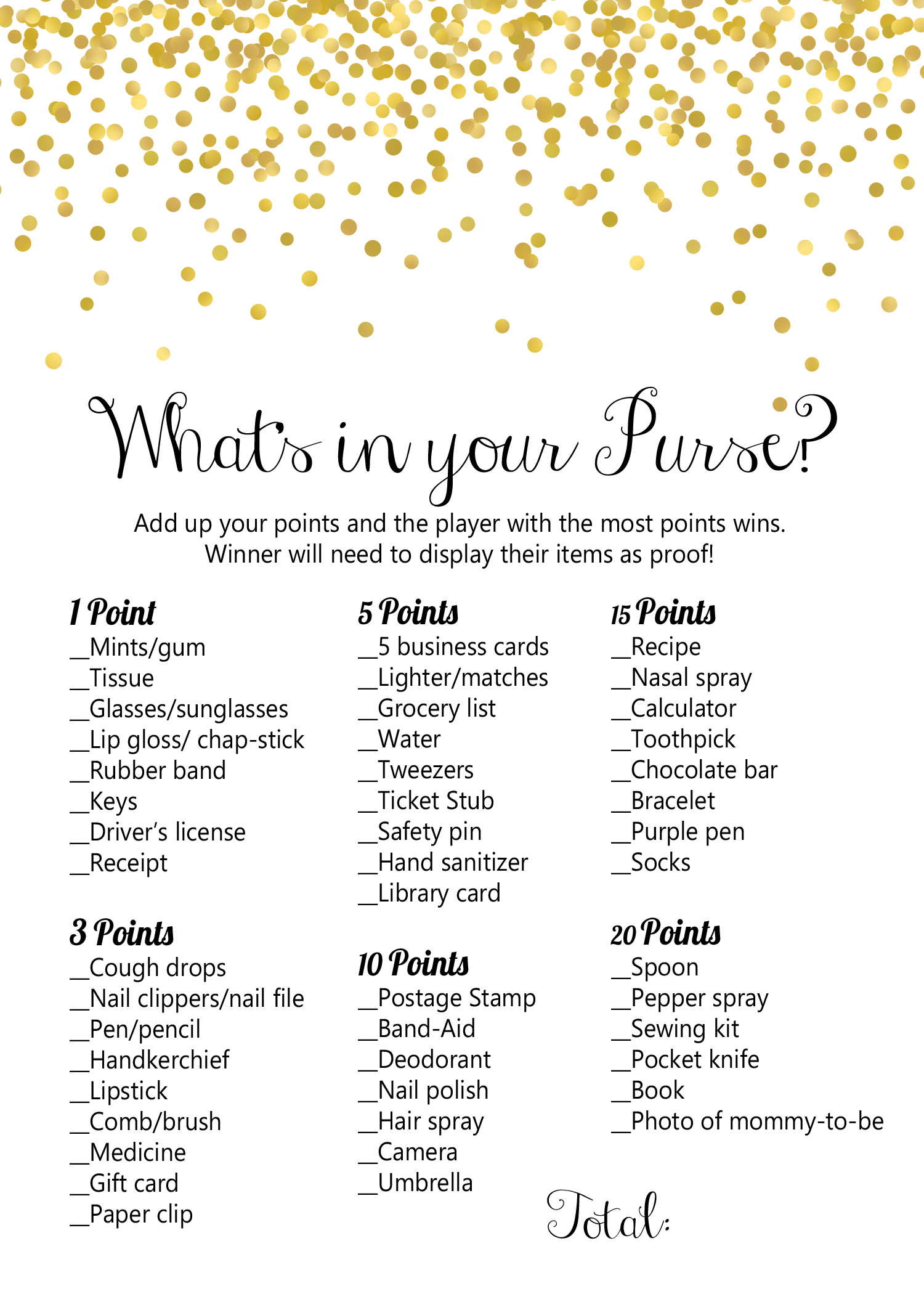 Published at 1500 × 2100 in Gold Confetti Baby shower Game Pack.