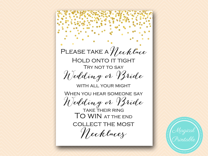 dont say bride or wedding take a necklace game