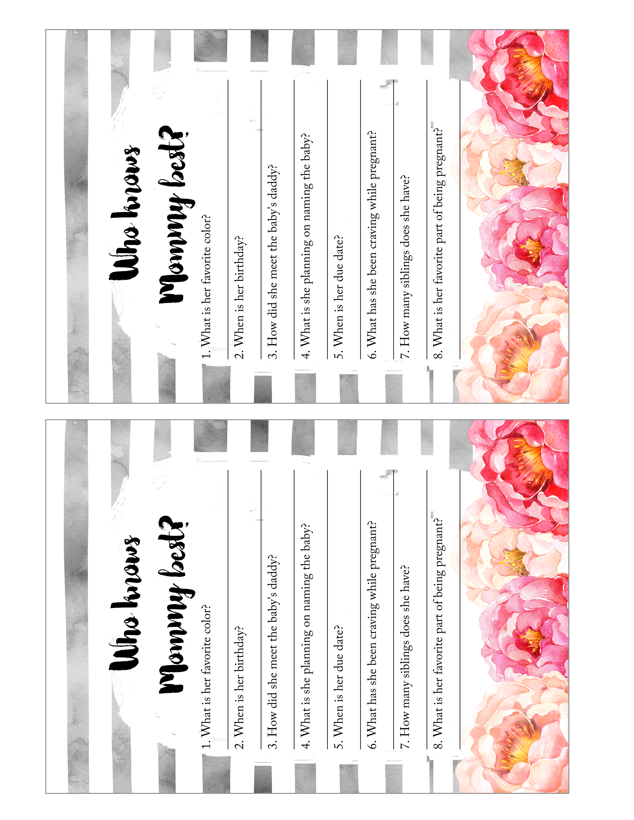 Published at 2550 × 3300 in FREE Watercolor Peonies Baby Shower Game Pack.