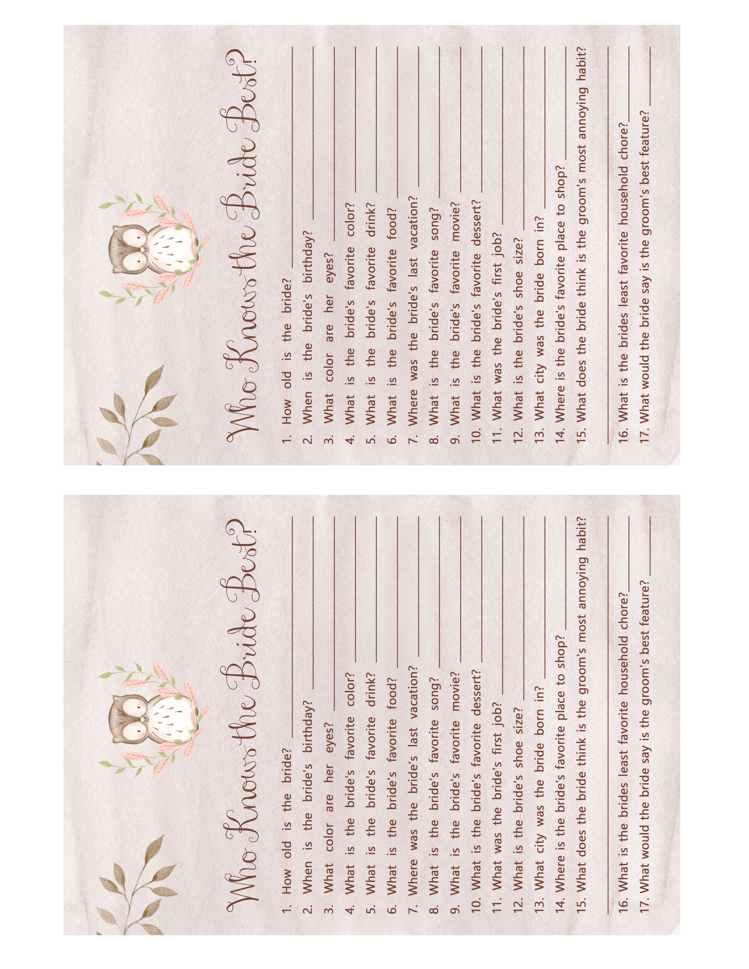 Published at 2550 × 3300 in Woodland Bridal Shower Games – Owl.