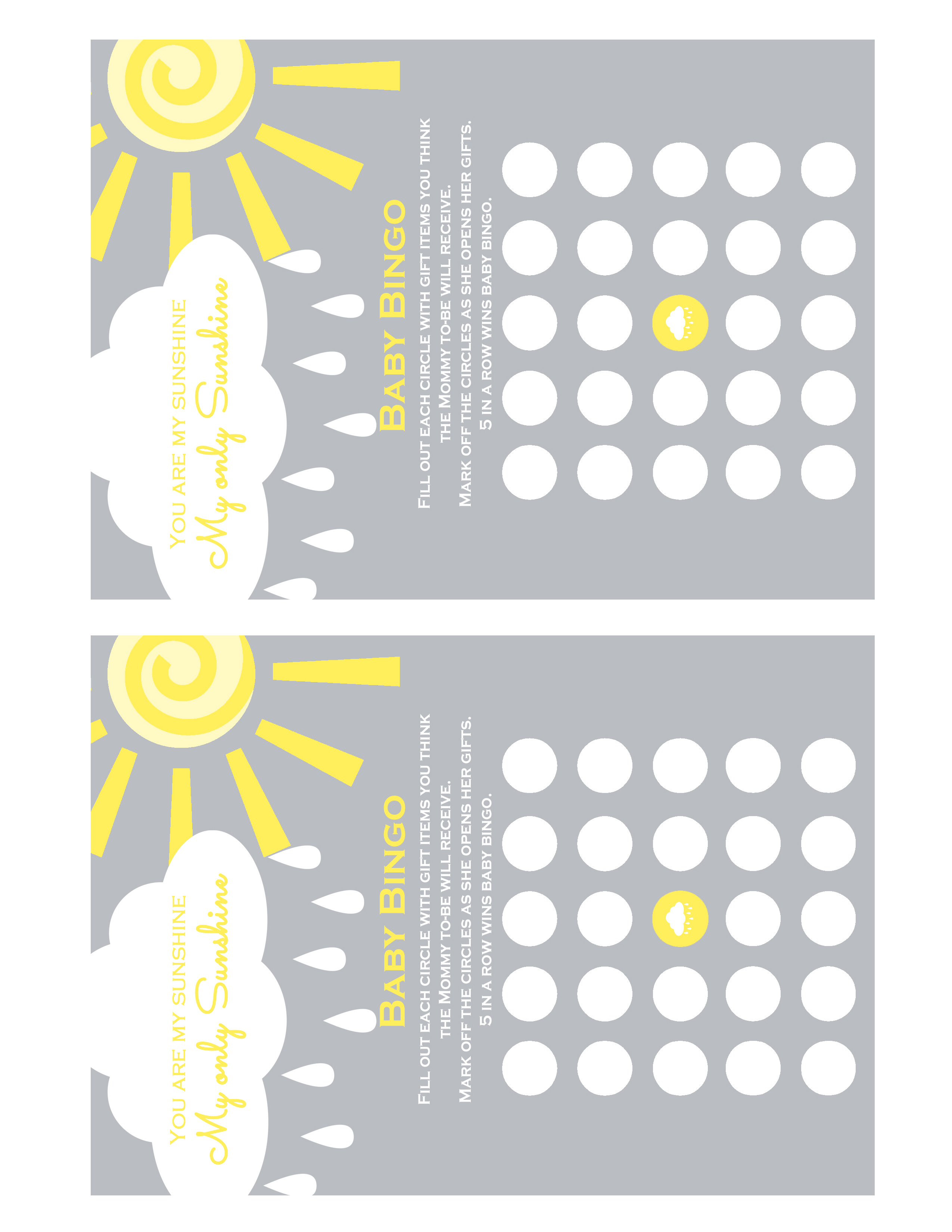 Published at 2550 × 3300 in You are my Sunshine Baby Shower Game Pack.